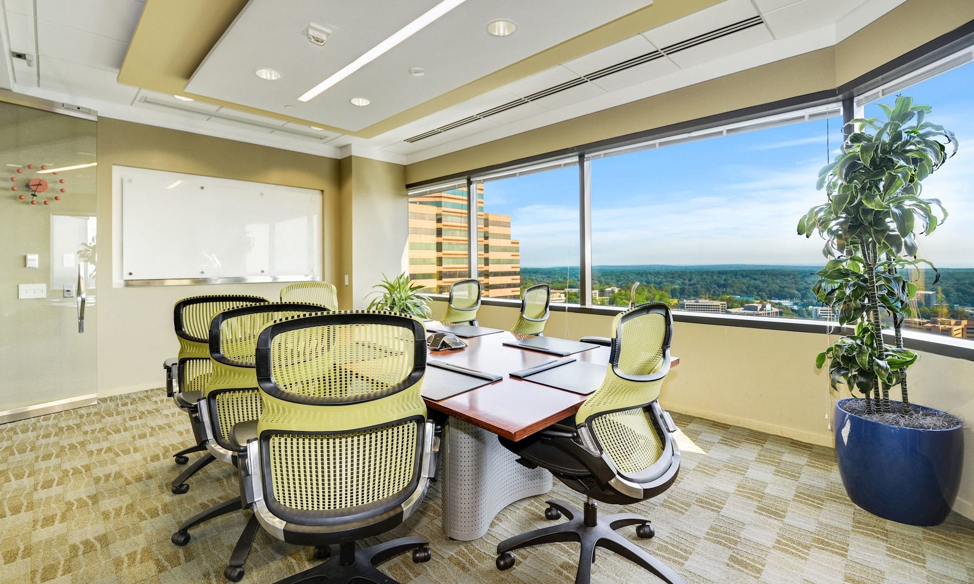 Each Carr Workplaces location has multiple meeting and conference rooms of various sizes. This means that you can rent a large or small conference room, depending on the number of people that will be in attendance.
